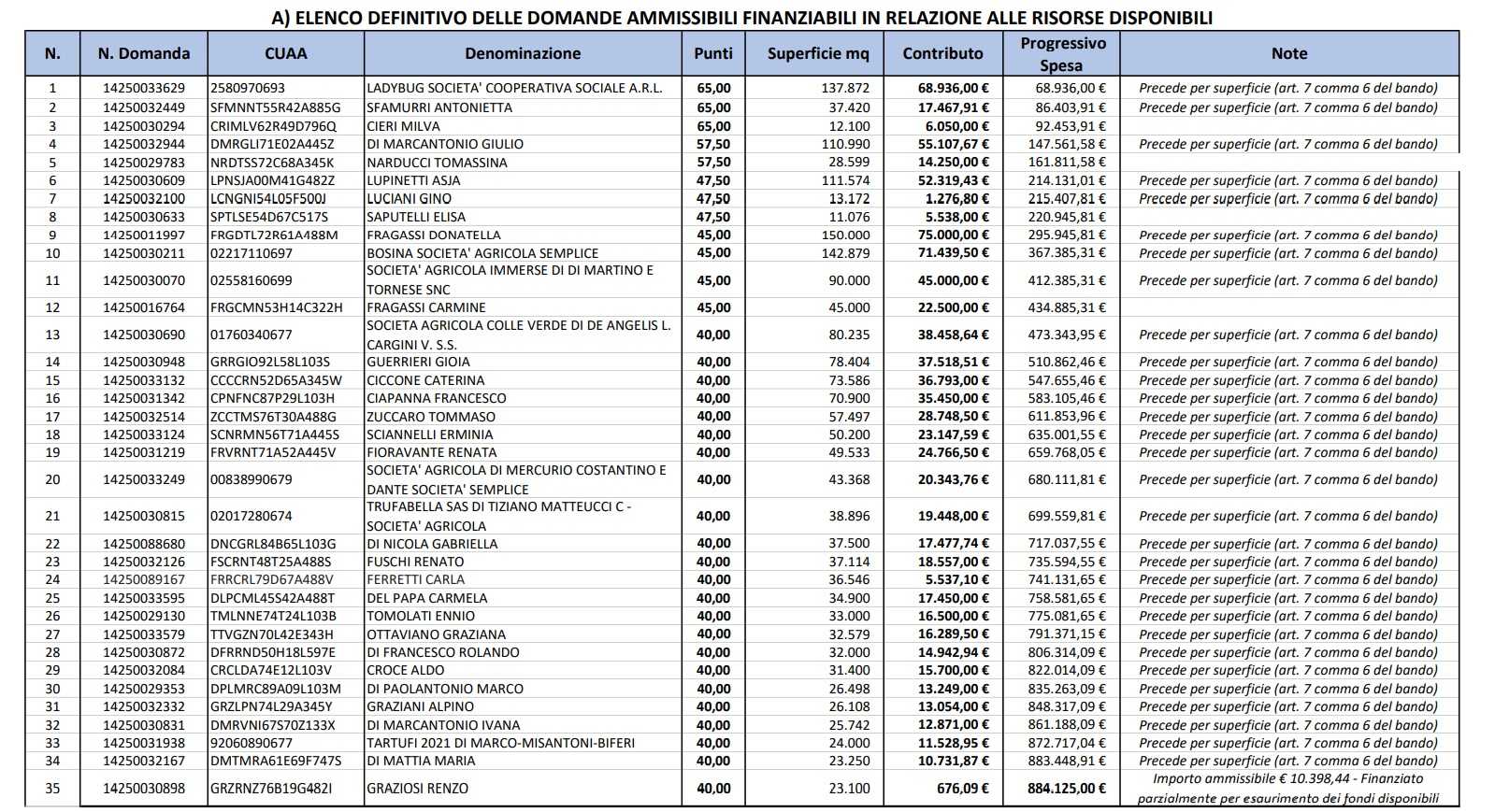 “Il bando ha riscosso un buon successo alla luce delle 160 domande provenienti dall’intero territorio regionale, per una misura strategica e innovativa, per ora a beneficio di 35 imprese. Ci sono però anche 108 domande, che interessano altri 220 ettari di superficie, istruite con esito favorevole e che, pur avendo tutti i requisiti, non è stato possibile finanziare in questa prima fase, per carenza dei fondi disponibili. Garantisco, fin da ora, il mio massimo impegno per reperire le ulteriori risorse a far scorrere la graduatoria fino all’ultima delle domande ammissibili”.