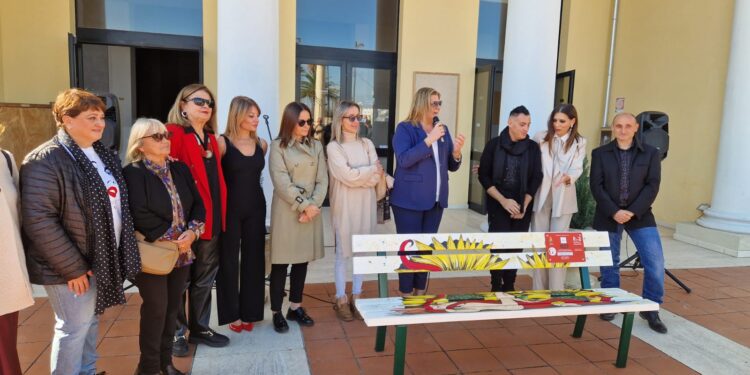 Panchina d’autore contro il femminicidio consegnata a Giulianova, simbolo di impegno e rinascita