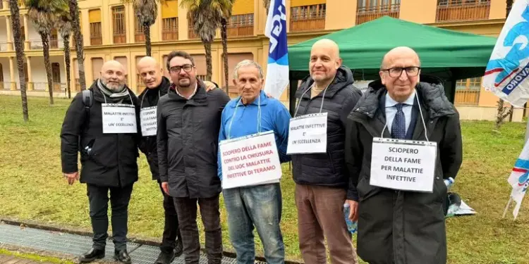 Teramo. E’ iniziata ieri mattina, davanti al Lotto III dell’ospedale Mazzini, a Teramo, una mobilitazione a difesa della sanità teramana, alla luce delle strategie disegnate dalla Asl nel nuovo atto aziendale e segnatamente nei confronti del reparto di malattie infettive del nosocomio del capoluogo: protagonisti di uno sciopero della fame pacifico, il giornalista Giancarlo Falconi, il segretario regionale UGL Salute, Stefano Matteucci e l’ex assessore Valdo Di Bonaventura.