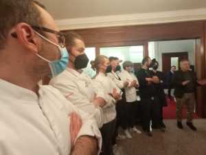 Grande apprezzamento per la cena di beneficenza, con oltre 60 posti prenotati, a cura dello chef di Civitella del Tronto, Sabatino Lattanzi, dello stesso ristorante Zunica 1880, e di Davide Di Fabio, di Bellante già compente della brigata dello stellato Massimo Bottura, e adesso chef del ristorante Dalla Gioconda di Gabicce Monte, in provincia di Pesaro. In sala i ragazzi e ragazze dell’Istituto Di Poppa- Rozzi.