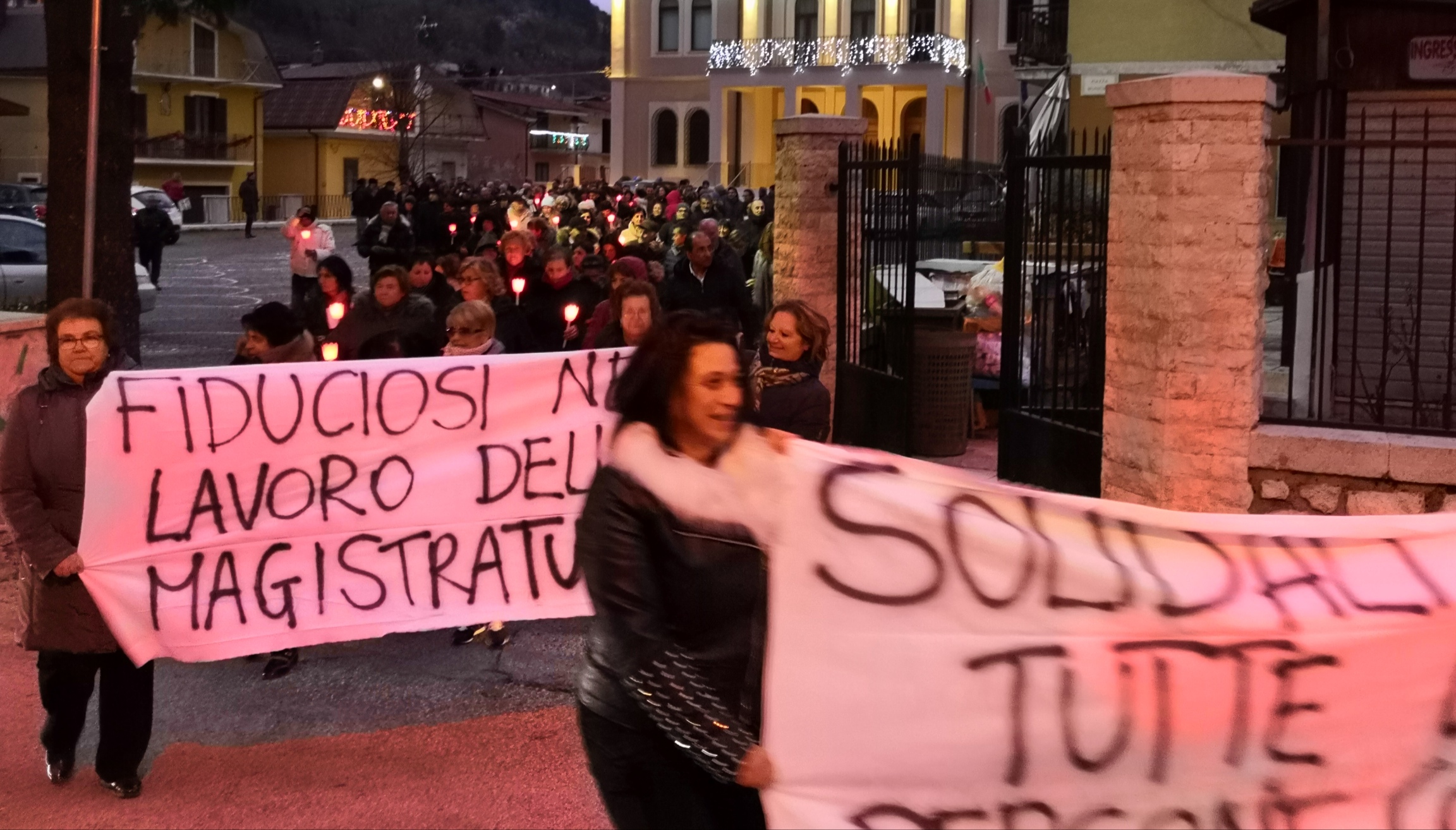 Inchiesta Capistrello, fiaccolata di solidarietà per il sindaco e gli indagati. In 200 sfilano per le vie del paese