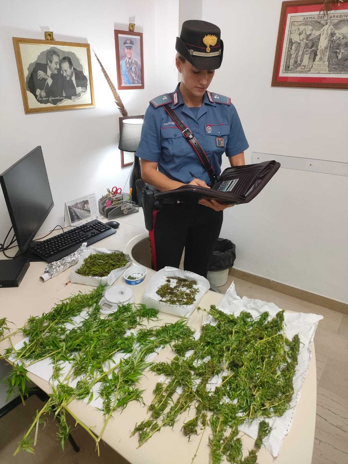 A seguito della perquisizione i Carabinieri rinvenivano occultati in un mobile da cucina chilogrammi 1,5 di sostanza stupefacente del tipo Marijuana e grammi uno di Eroina suddivisa in due dosi, inoltre veniva rinvenuto materiale per la suddivisione in dosi della sostanza (Bilancino di precisione).