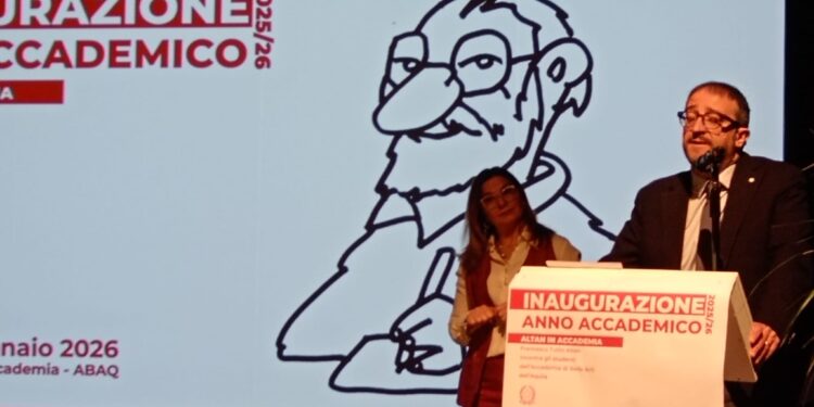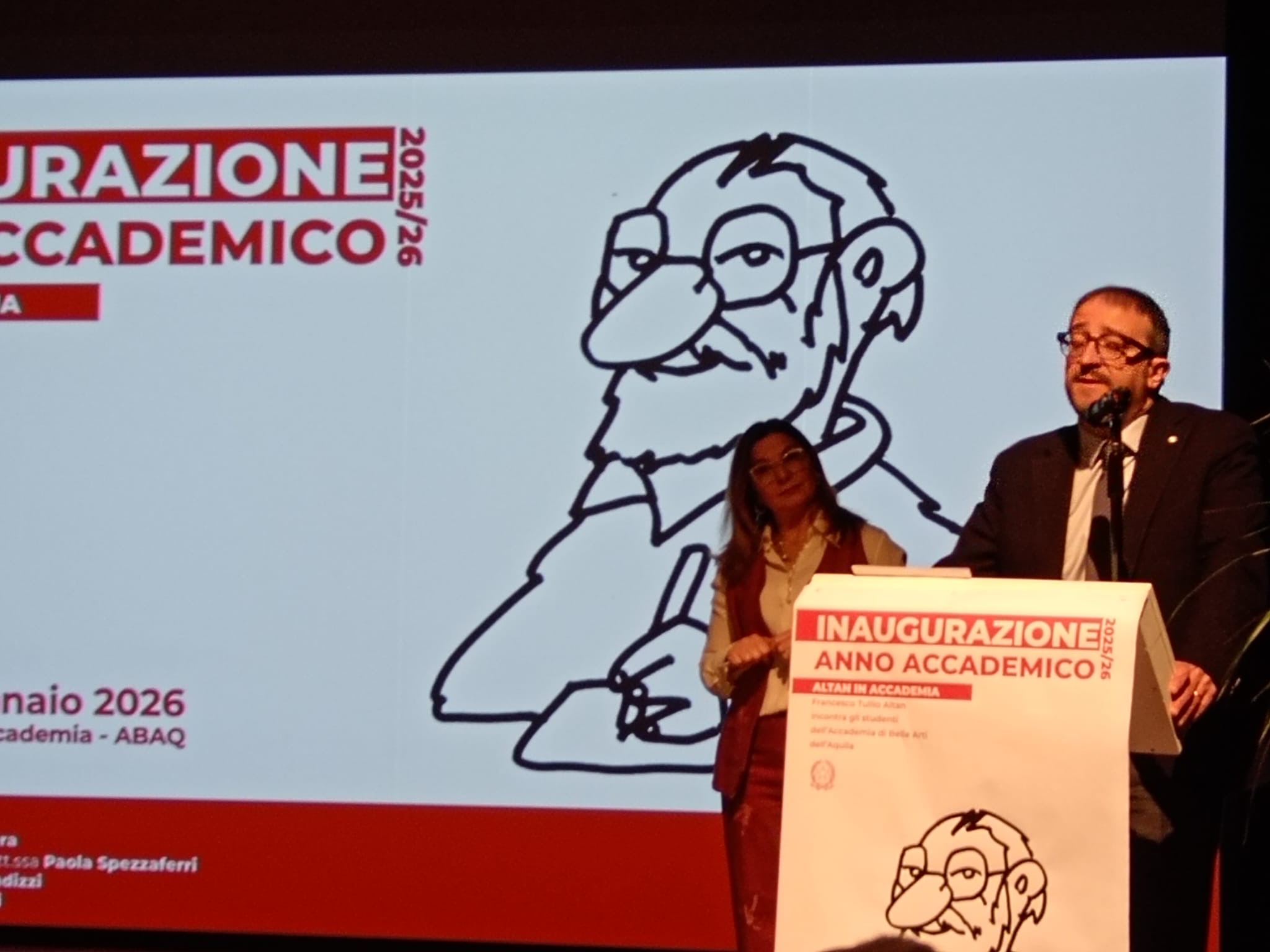 L’Aquila. Si è svolta oggi, presso il Teatro dell’Accademia di Belle Arti dell’Aquila, la cerimonia di inaugurazione dell’Anno Accademico 2025-2026, alla presenza del celebre fumettista e autore satirico Francesco Tullio Altan, creatore di iconici personaggi come La Pimpa e Cipputi.