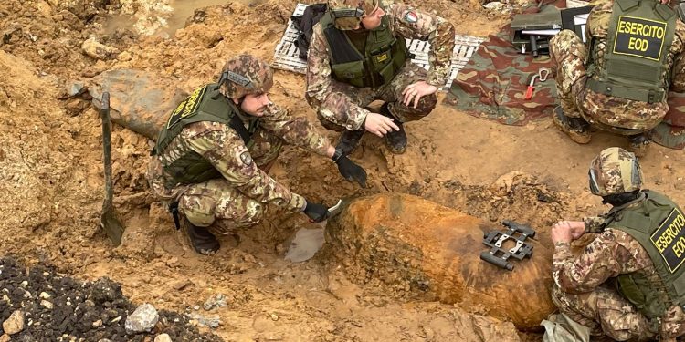 Gli artificieri dell’Esercito italiano del 6° Reggimento Genio Pionieri di Roma sono arrivati nell’area dove si trova l’ordigno e hanno iniziato a lavorare.