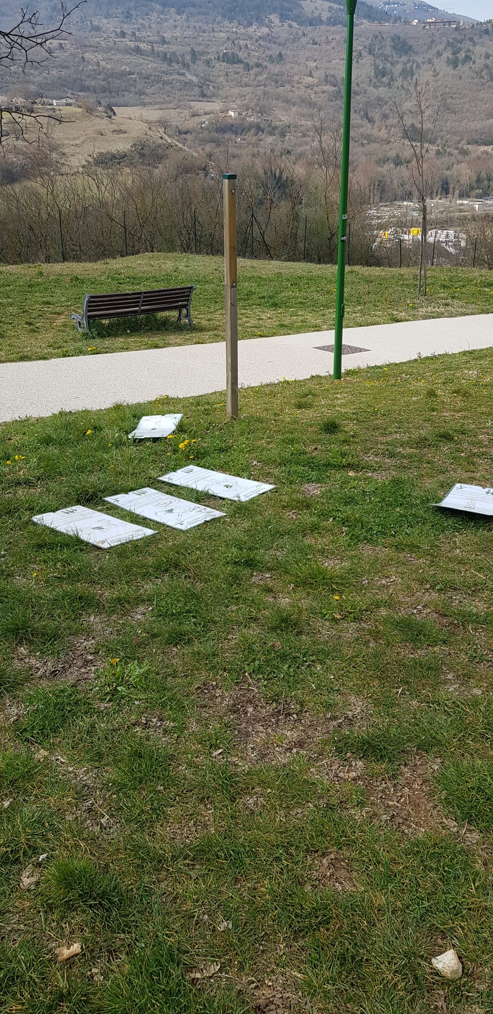 L’Aquila. “Questa mattina mi sono giunte numerose segnalazioni da parte di nostri concittadini riguardanti ancora una volta atti vandalici all’interno del Parco del Sole, a ridosso della basilica di Collemaggio”. A denunciare l’accaduto Luca Rocci, consigliere comunale di L’Aquila Futura.”Come si nota dalle foto denuncia, sono stati rimossi e gettati a terra alcuni cartelli caratterizzanti il percorso fitness realizzato nell’area”.