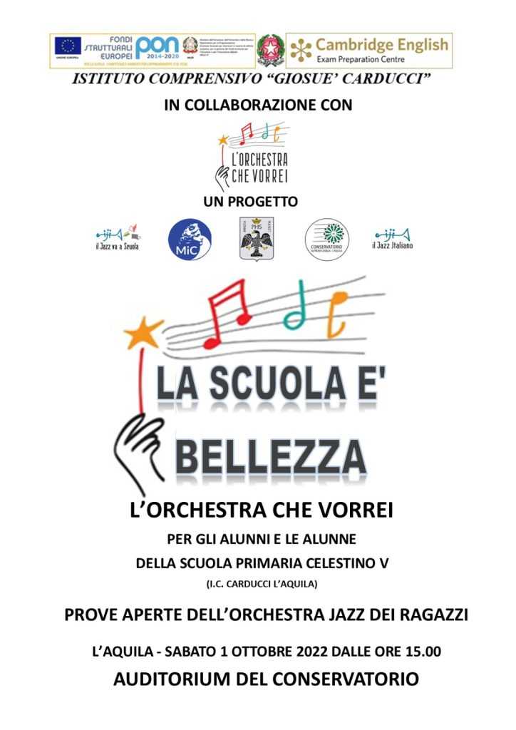 L’Istituto Comprensivo “G. Carducci”, il Conservatorio “A. Casella” e l’Orchestra che Vorrei presentano “La scuola è bellezza”, una giornata dedicata alle alunne e agli alunni della scuola primaria “Celestino V” che hanno subito disagi per la mancata riapertura il primo giorno di scuola a causa di atti vandalici gravi.