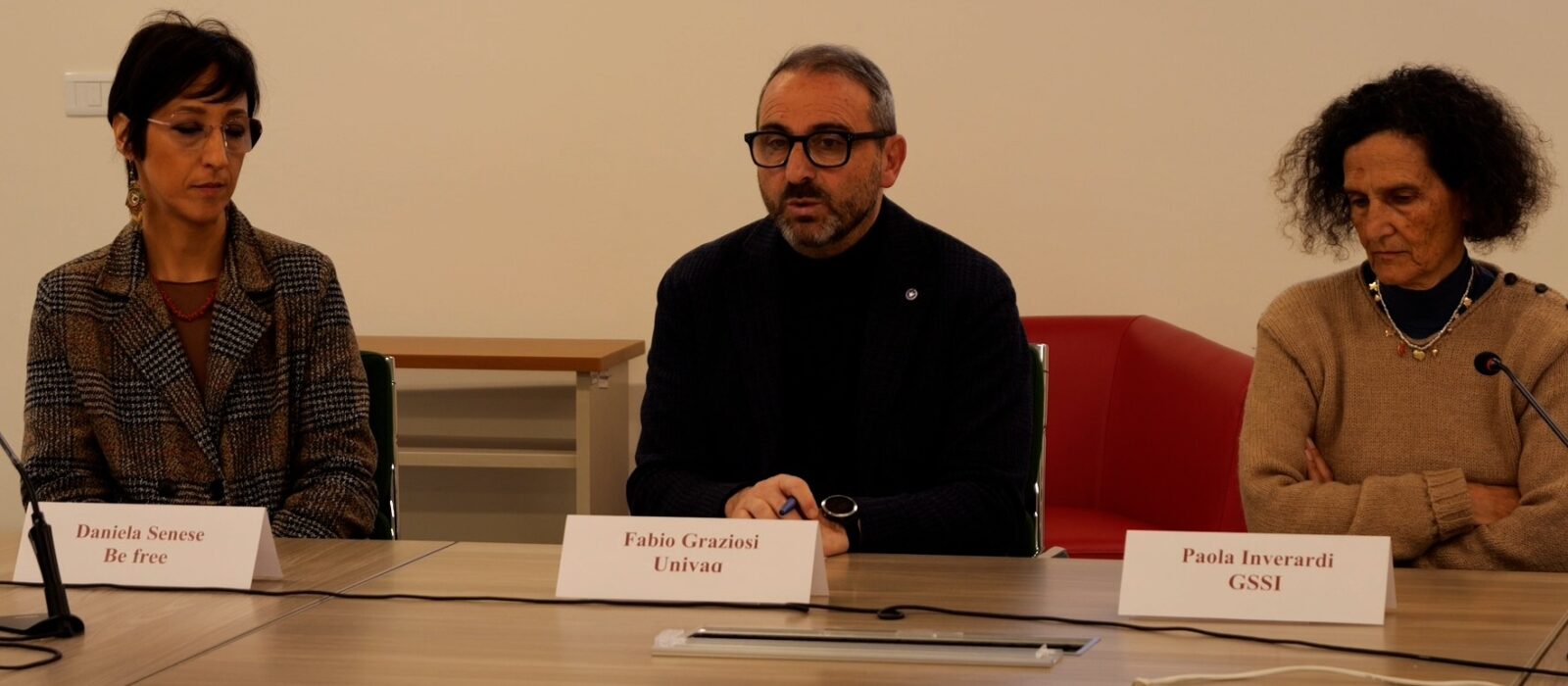 A illustrare i dettagli sono stati il rettore dell’Università dell’Aquila Fabio Graziosi; la rettrice del GSSI Paola Inverardi; e la psicologa Daniela Senese, responsabile della Casa delle Donne della Marsica per la Cooperativa Sociale Be Free e coordinatrice dello sportello.