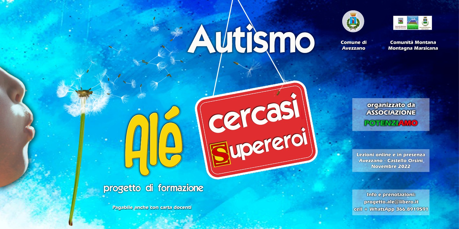 Il Progetto Alè è stato presentato lo scorso anno in municipio dal vicesindaco di Avezzano Domenico Di Berardino, dal commissario della Comunità Montana Montagna Marsicana Gianluca De Angelis, dalla direttrice di Neuropsichiatria infantile ASL1 Maria Pia Legge, dalla dirigente del Comune di Avezzano Maria Laura Ottavi e dalla Presidente dell’Associazione Potenziamo, promotrice dell’iniziativa Anna Maria Anselmi.