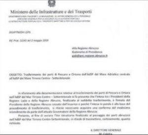 Questa mattina la pentastellata ha pubblicato sulla sua pagina Facebook la copia del documento e della lettera, a firma del Ministero delle Infrastrutture e dei Trasporti, inviata lo scorso 2 maggio alla presidenza della Regione Abruzzo.