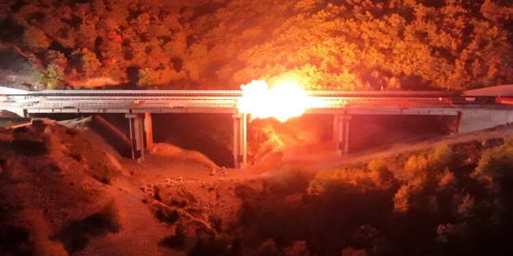 L’Aquila. Toto Costruzioni Generali prosegue i lavori di adeguamento antisismico sull’autostrada A24, in prossimità dello svincolo di Tornimparte. Poco prima dell’alba è stato completato l’abbattimento controllato della carreggiata ovest del viadotto Valle Orsara, in direzione Roma, realizzato con microcariche esplosive. L’intervento, durato solo pochi secondi, è stato il risultato di un’attenta progettazione e di una lunga preparazione, permettendo in poche ore la riapertura in sicurezza per viaggiatori e maestranze, in entrambe le direzioni.