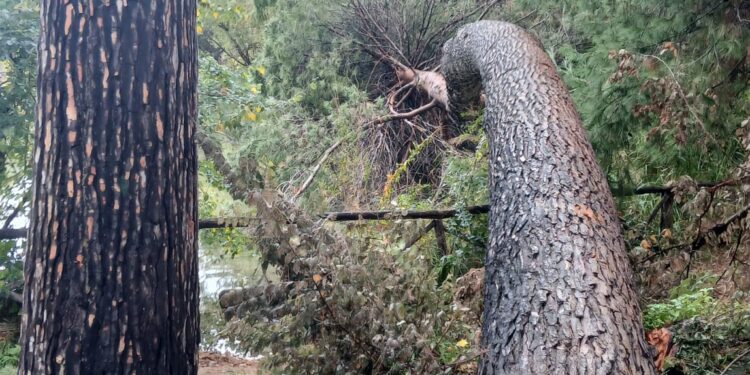 Pescara. Il comparto della Pineta dannunziana dove si trova il laghetto artificiale è chiuso al pubblico a seguito della caduta di due alberi.