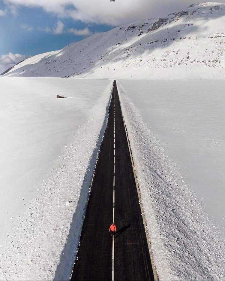 L’Aquila. Lo spettacolare scatto della statale 696 innevata ha fatto il giro del mondo. A realizzarlo il fotografo Stefano Sponta che lo ha postato su Instagram.