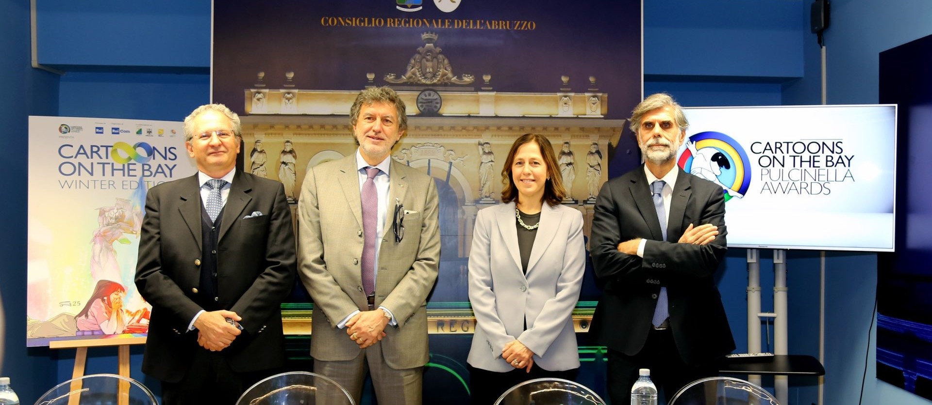 L’Aquila. La Winter Edition di Cartoons on the Bay torna a L’Aquila dal 26 al 28 novembre con un programma ricchissimo presentato oggi in conferenza stampa all’Emiciclo alla presenza del Presidente Marco Marsilio e del sindaco dell’Aquila Pierluigi Biondi.