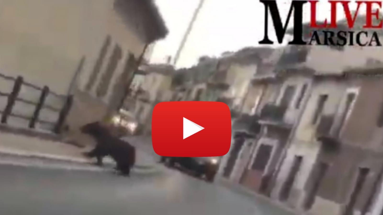 Pescina. L'orsa Amorena che corre per le strade di Pescina, il famoso orso del Parco nazionale d'Abruzzo, Lazio e Molise...