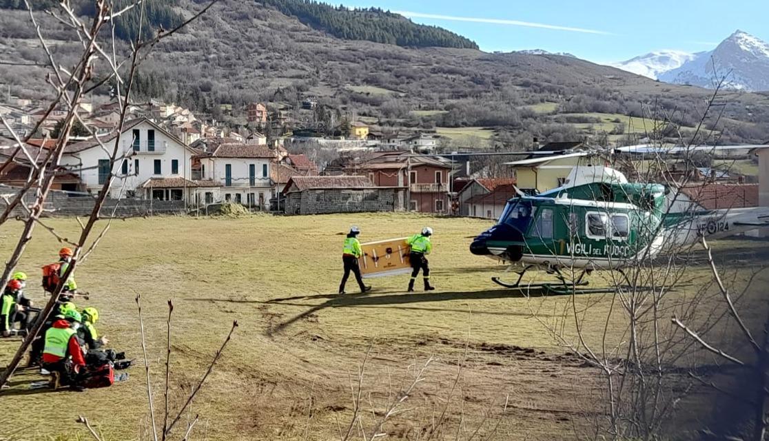 Massa d'Albe. È appena partito con l'elicottero dei vigili del fuoco il georadar che sarà portato in quota per cercare tracce...