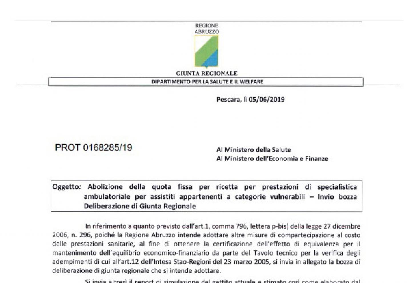 Pescara. "La Regione Abruzzo ha presentato lo scorso 5 giugno ai ministeri affiancanti l'istanza per l'abolizione del superticket sulle prestazioni sanitarie". Torna...