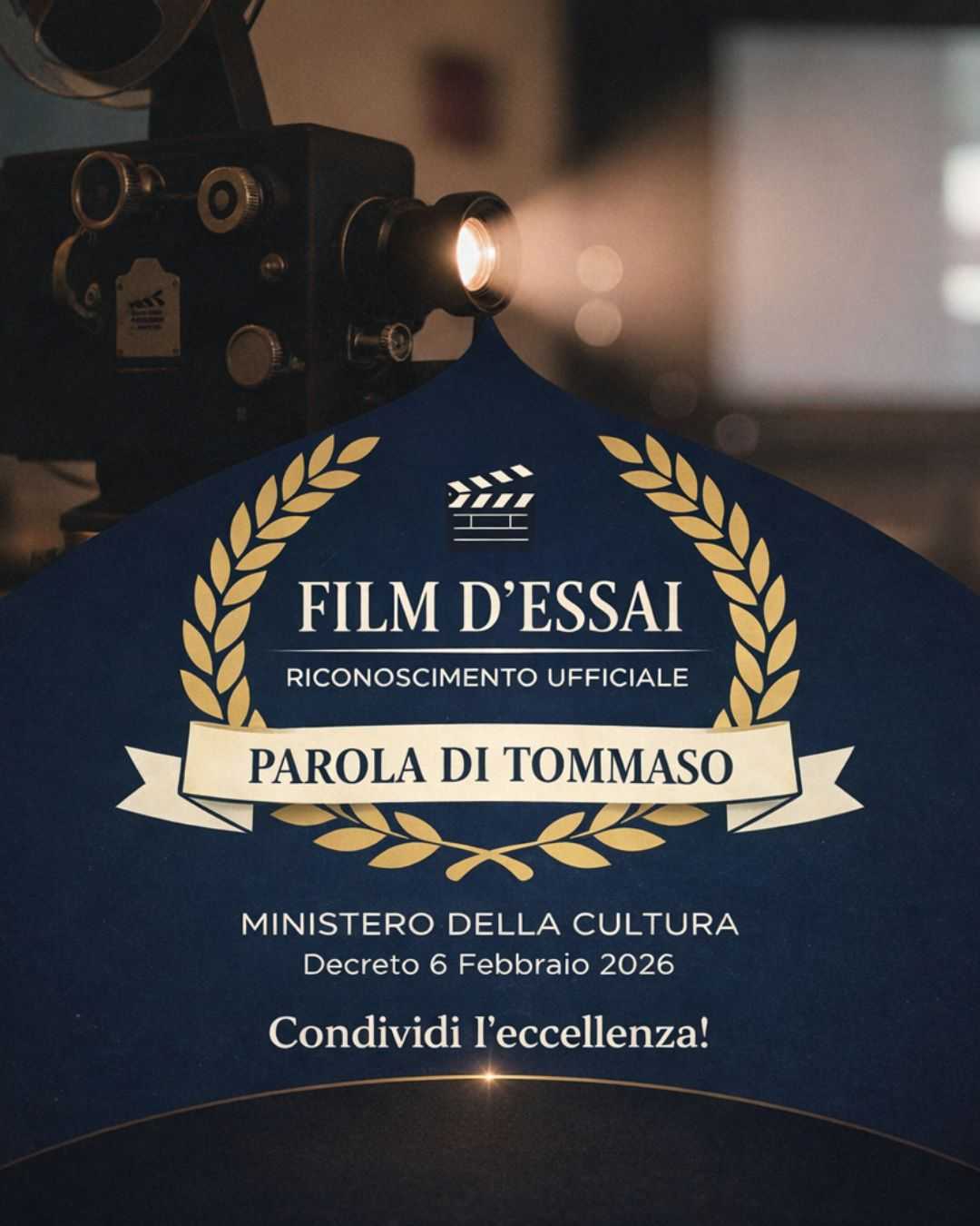 Celano. Il Ministero della Cultura ha ufficialmente riconosciuto “Parola di Tommaso” come Film d’Essai, attribuendo all’opera la qualifica riservata alle produzioni di alto profilo artistico e culturale. Un traguardo significativo che il Comune di Celano accoglie con soddisfazione e orgoglio.