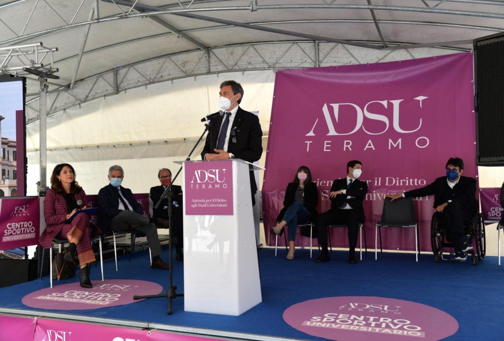 Alla cerimonia ha preso parte anche l’assessore con delega all’università e politiche sociali Pietro Quaresimale: «E’ un progetto importante che andrà a caratterizzare l’attività universitaria teramana. La realizzazione della struttura avrà l’obiettivo di migliorare i servizi universitari attraverso tre elementi: recupero di un’area degradata della città di Teramo, sostenibilità ambientale e accessibilità. Noi andremo a sostenere il progetto con decisione. E grazie all’iniziativa promossa dall’Adsu – ha concluso Quaresimale – sarà potenziata l’Università degli Studi di Teramo». Alla cerimonia ha partecipato anche il presidente nazionale del CIP Luca Pancalli poiché il centro sarà aperto agli sport paralimpici. Il progetto prevede infatti la realizzazione del Centro Sportivo Universitario accessibile anche al Circuito del Comitato Italiano Paralimpico (CIP). A tal fine l’Adsu di Teramo, come annunciato dal direttore Antonio Sorgi, ha già preso contatti per vie brevi con il Centro Universitario Sportivo Italiano (CUS), il quale si è dimostrato fortemente interessato al progetto con l’intento di inserirlo nei circuiti nazionali ed internazionali per gli eventi sportivi universitari.