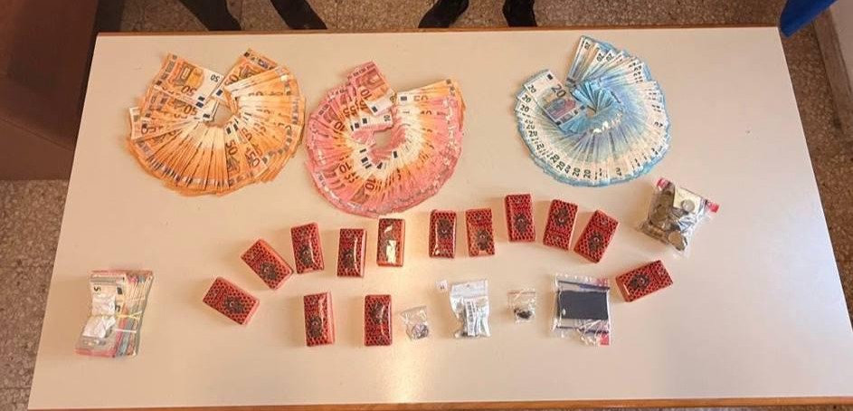 La perquisizione è stata poi estesa a un’altra abitazione nella disponibilità del giovane, dove è stato scoperto il vero covo dello spaccio: sequestrati 1,3 chilogrammi di hashish suddivisi in 13 panetti, circa 20.000 euro in contanti e ulteriore materiale per il confezionamento e la pesatura dello stupefacente.