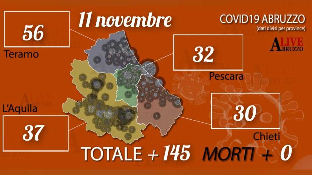 Pescara. Sono 145 (di età compresa tra 2 e 87 anni) i nuovi casi positivi al Covid registrati oggi in Abruzzo, che portano il totale dall’inizio dell’emergenza a 84246. Lo comunica l’Assessorato regionale alla Sanità.