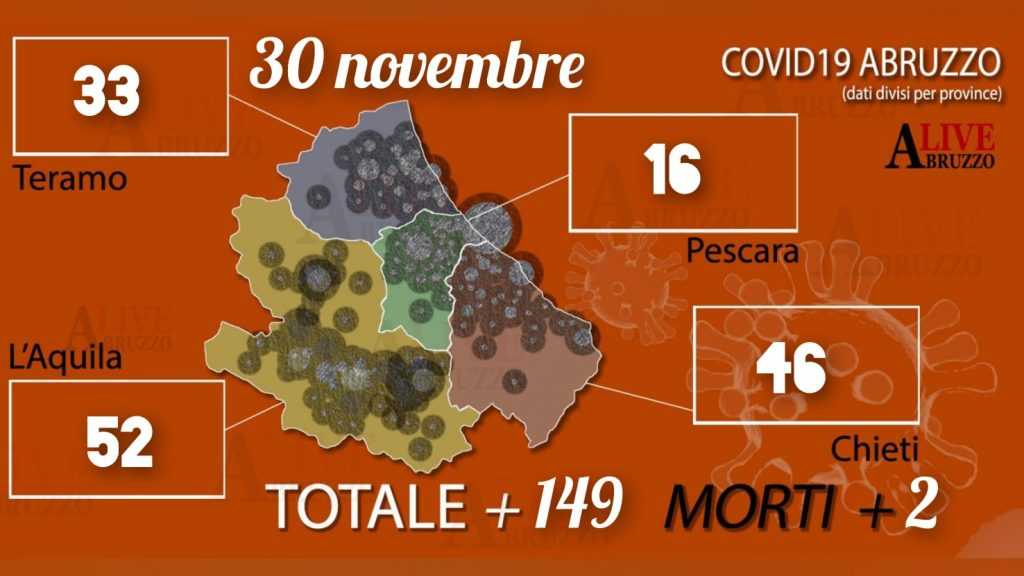 Pescara. Sono 149 (di età compresa tra 3 e 86 anni) i nuovi casi positivi al Covid registrati oggi in Abruzzo, che portano il totale dall’inizio dell’emergenza a 87651. Lo comunica l’assessorato regionale alla Sanità.
