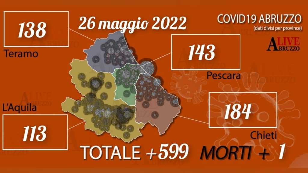 Pescara. Sono 599 (di età compresa tra 1 mese e 93 anni) i nuovi casi positivi al Covid registrati oggi in Abruzzo, che portano il totale dall’inizio dell’emergenza – al netto dei riallineamenti – a 403606. Dei positivi odierni, 447 sono stati identificati attraverso test antigenico rapido.