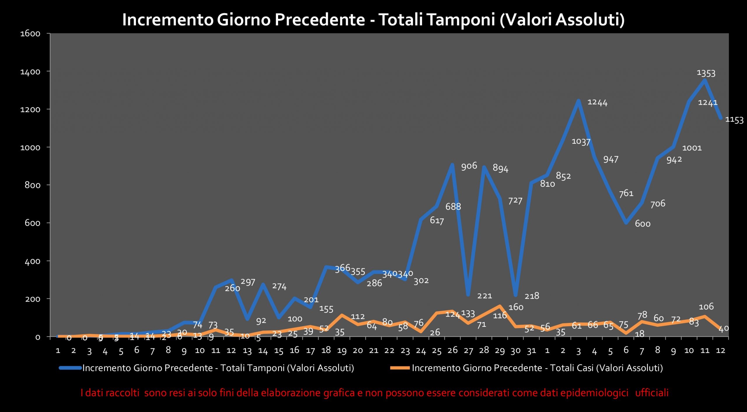 Pescara. In netto calo i nuovi contagi in Abruzzo, ma il numero dei tamponi resta il sorvegliato speciale. Infatti, più la forbice tra casi positivi e tamponi è ampia, più si presume che il monitoraggio sul territorio sia attendibile. Nella giornata di ieri, infatti, come comunicato dal servizio prevenzione e tutela della salute dell’assessorato regionale alla Sanità, si è registrata una diminuzione di 228 (-20,70%) esami eseguiti rispetto al giorno precedente quando i positivi erano stati 106, su un totale di 1101 tamponi. Resta invariato il numero delle terapie intensive. Ad oggi si è raggiunto il 54% della loro capienza massima disponibile (Liguria 79% – Lombardia 69% – Calabria 10% – Molise 9%). Aumentano di 31 unità (+9,84%) i ricoveri in ospedale. Sono 1742 (+1,04%) gli attualmente positivi. Su 873 tamponi analizzati ieri, il 4,6% di positivi sul totale, sono stati 40 (+1,88%) i nuovi contagiati. Crescono i decessi: sono state 6 (+2,91%) le ultime persone ad essersi aggiunte al tragico elenco portando il totale a 212. Ad aumentare e questa è una buona notizia, sono anche i guariti saliti a 206 (+8,42%), 16 in più rispetto a ieri.