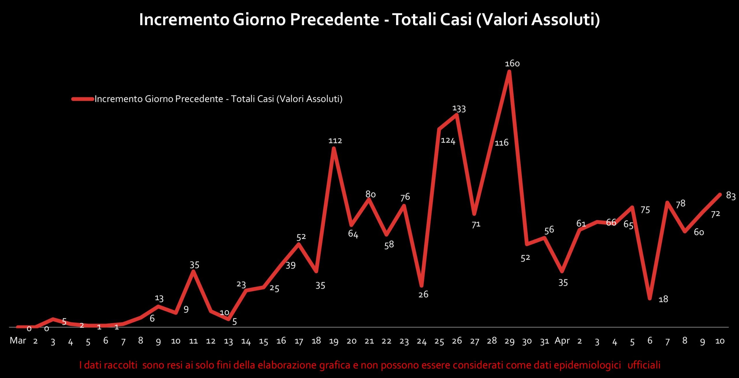 L’Abruzzo ha superato quota 2.000 casi positivi al Covid-19 con un numero di tamponi che torna ancora una volta a crescere. Un saliscendi quello degli ultimi giorni che si evidenza chiaramente dai nostri grafici. Sono 83 (+4,29%) i nuovi positivi risultati dagli 883 tamponi analizzati ieri dai tre laboratori analisi. Un numero che equivale al 10% del totale, senza dubbio sopra il 7,3% registrato con i 72 casi del giorno precedente risultati dai 981 tamponi sottoposti ad esame. Scendono i pazienti in terapia intensiva, che ieri sono stati 53, quattro meno del giorno precedente. Si attenua finalmente anche l’ondata dei decessi, quattro nella giornata di ieri +2,06%, Sale ancora il numero dei guariti con 181 totali.
