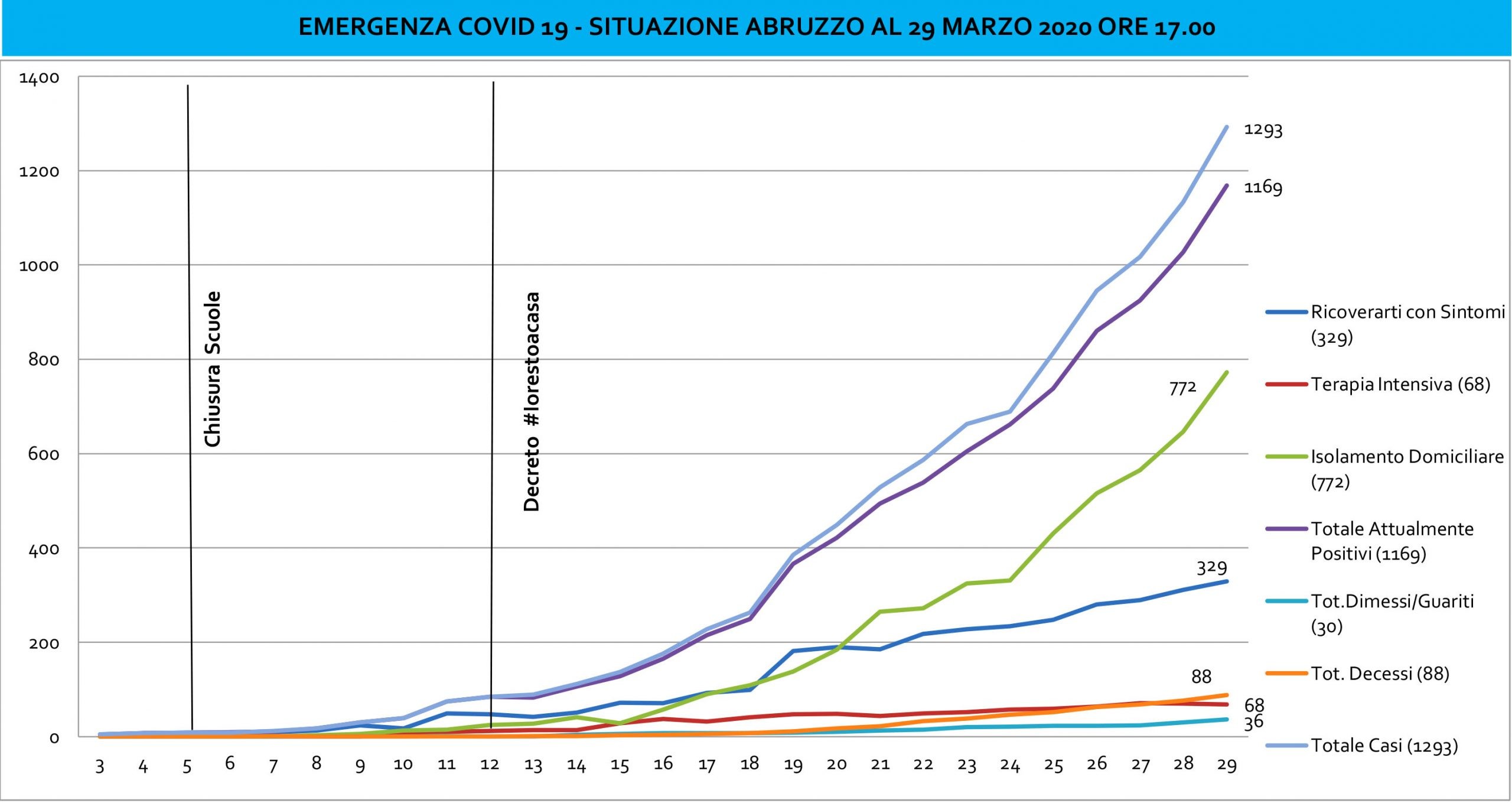 Pescara. Un dato impressionante, ancora un nuovo aumento, questa volta di ben 160 (+14.1%) casi rispetto alla giornata precedente, il più alto dall’inizio della emergenza. In salita anche il numero dei morti. Cifre spietate che, da una lettura più approfondita però potrebbero mostrare, finalmente, la luce in fondo al tunnel. Da una diversa interpretazione infatti, notiamo una crescita in termini percentuali graduale e costante. Il trend, frutto delle misure di isolamento messe in atto, appare stabile e potrebbe far ben sperare.