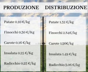 “Nel nostro territorio la sensazione è che agricoltura e agricoltori siano i capri espiatori per lavare la coscienza di chi non vede e non si accorge dove si annidano i veri criminali: traffico di droghe, rapine negli appartamenti, risse notturne di alcolizzati, omicidi stradali, corse clandestine ecc. ecc. Invitiamo i consumatori a riflettere sulla tabella che segue. Non veniteci a fare la lezione che occorre essere organizzati  per spuntare prezzi più elevati” continua la nota.