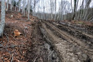 Gravi danni al suolo, alle piante erbacee ed in generale all’ecosistema di un’ampia area con superficie pari a circa 20 ettari. In alcuni casi (come in quello rappresentato nella carta topografica riportata in allegato) vi sono state realizzate vere e proprie piste per il transito dei trattori, con sbancamento delle relative scarpate, di lunghezza pari a circa 300 m, larghezza di 3-5 metri e scarpate alte da 30 a 150 cm. Sono stati anche osservati danni diretti agli alberi di agrifoglio (Ilex aquifolium), il ripetuto transito dei trattori per l’esbosco del legname sul delicato suolo forestale (reso ancor più fragile dalle correnti condizioni meteorologiche che hanno determinato un’elevata presenza di acqua) ha prodotto una devastazione senza precedenti, in una delle aree più intatte del Parco nazionale. E tutto ciò a pochi passi dalla Strada Provinciale n. 54 “Frentana”, sotto gli occhi degli addetti all’Ente Parco e dei Carabinieri Forestali che hanno il compito di controllare il territorio del Parco.