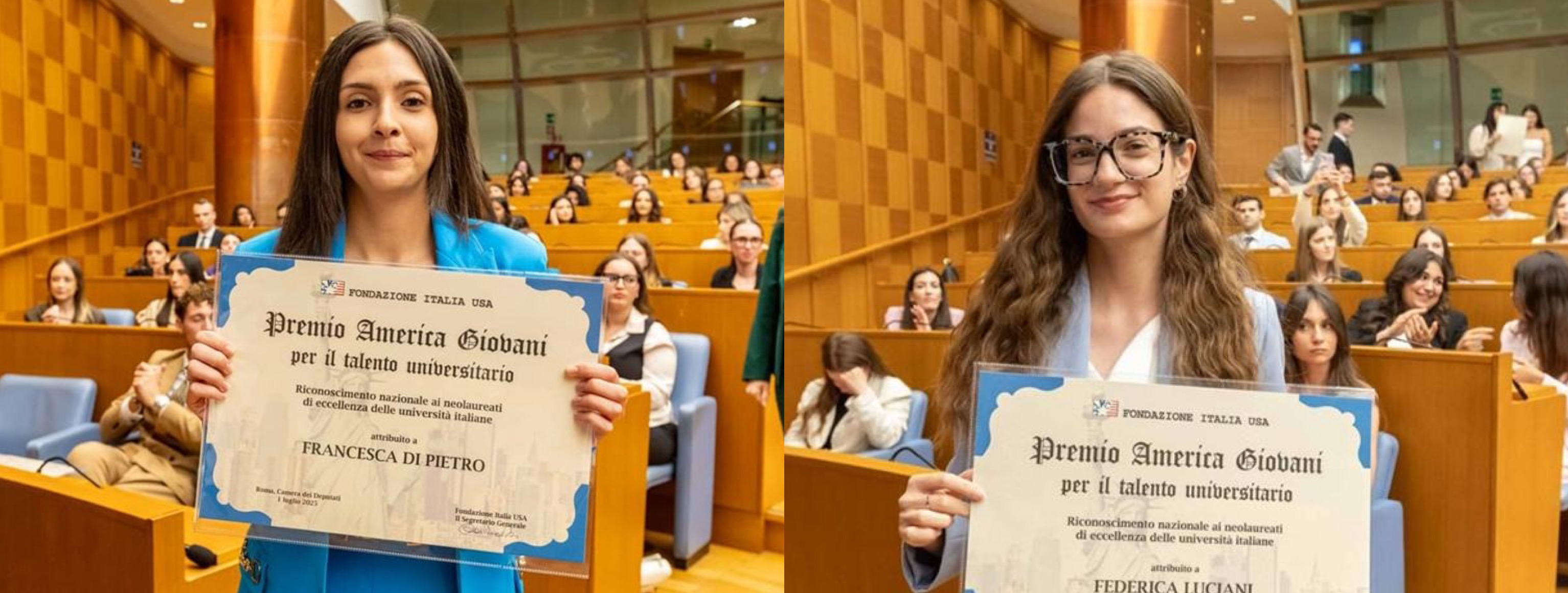 Teramo. Le vincitrici, alle quali è stata offerta la partecipazione al Master in “Leadership per le relazioni internazionali e il made in Italy”, hanno ritirato il premio nel corso delle cerimonie alla Camera dei Deputati, rispettivamente il 24 giugno e il 1° luglio scorso.