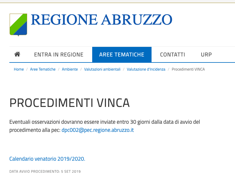 “Ora siamo al terzo deposito in un mese e mezzo”, precisa la stazione ornitologica abruzzese, “pertanto anche solo per svolgere questa procedura si arriva come minimo al 6 ottobre prima di poterne discutere in comitato V.I.A.. Eppure stranamente quest’ultimo è stato convocato con all’ordine del giorno proprio la discussione sul Calendario il prossimo 12 settembre. Vorranno per caso discutere il provvedimento mentre sono aperti i termini per le osservazioni su di esso?”.