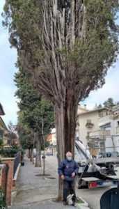 La questione degli alberi sul viale è semplice. Appena siamo stati eletti abbiamo eseguito le potature degli alberi. Abbiamo però capito che era necessario fare una ricognizione delle piante malate e pericolose, a causa di decenni di mancata manutenzione del verde.