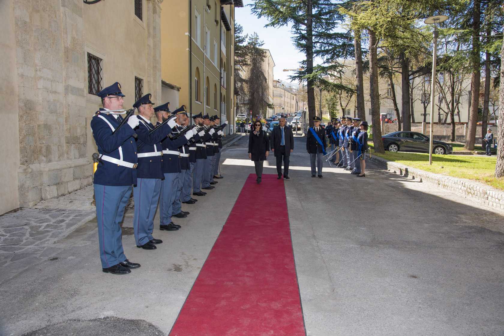 Nel prosieguo della cerimonia il Prefetto, il Questore, il Procuratore Capo del Tribunale dei minori, Dr. David Mancini, il Procuratore Generale della Repubblica facente funzioni, Dr. Alberto Sgambati, il Sostituto Procuratore della Repubblica, Dr.ssa Simonetta Ciccarelli e il Dirigente della Sezione Polizia Stradale di L’Aquila, hanno proceduto alla consegna degli attestati di merito conseguiti dal personale della Polizia di Stato che presta servizio nella Provincia di L’Aquila e che si è particolarmente distinto nello svolgimento dei compiti di istituto.