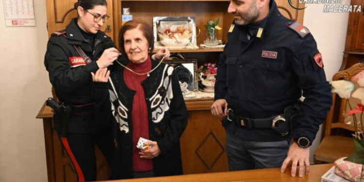 Effettivamente, poco dopo, una giovane si è recata a casa della signora che, spaventata, le ha consegnato tutti i propri preziosi, compresa la fede nuziale, dopo averli riposti in un sacchetto da freezer. Tuttavia, una volta contattato il coniuge, ignaro di tutto, la signora si è resa conto di essere stata truffata ed ha allertato i Carabinieri della Compagnia di Macerata.