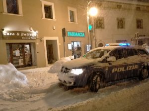 Ovindoli. Nel pomeriggio di ieri, una pattuglia della Sottosezione Polizia Stradale di Avezzano, in servizio di vigilanza sulla SS 696, scendendo da Ovindoli ha prestato soccorso ad un furgone per il trasporto di farmaci destinati alla farmacia del comune montano. L’ autista non riusciva a proseguire, a causa della neve accumulatasi sulla strada. Gli operatori della pattuglia, oltre ad aver aiutato il conducente a invertire la marcia, per permettergli il rientro, hanno poi preso il carico di farmaci e provveduto alla loro consegna, assicurando le scorte destinate ai cittadini serviti dalla farmacia destinataria, tra cui insulina per un paziente diabetico.
