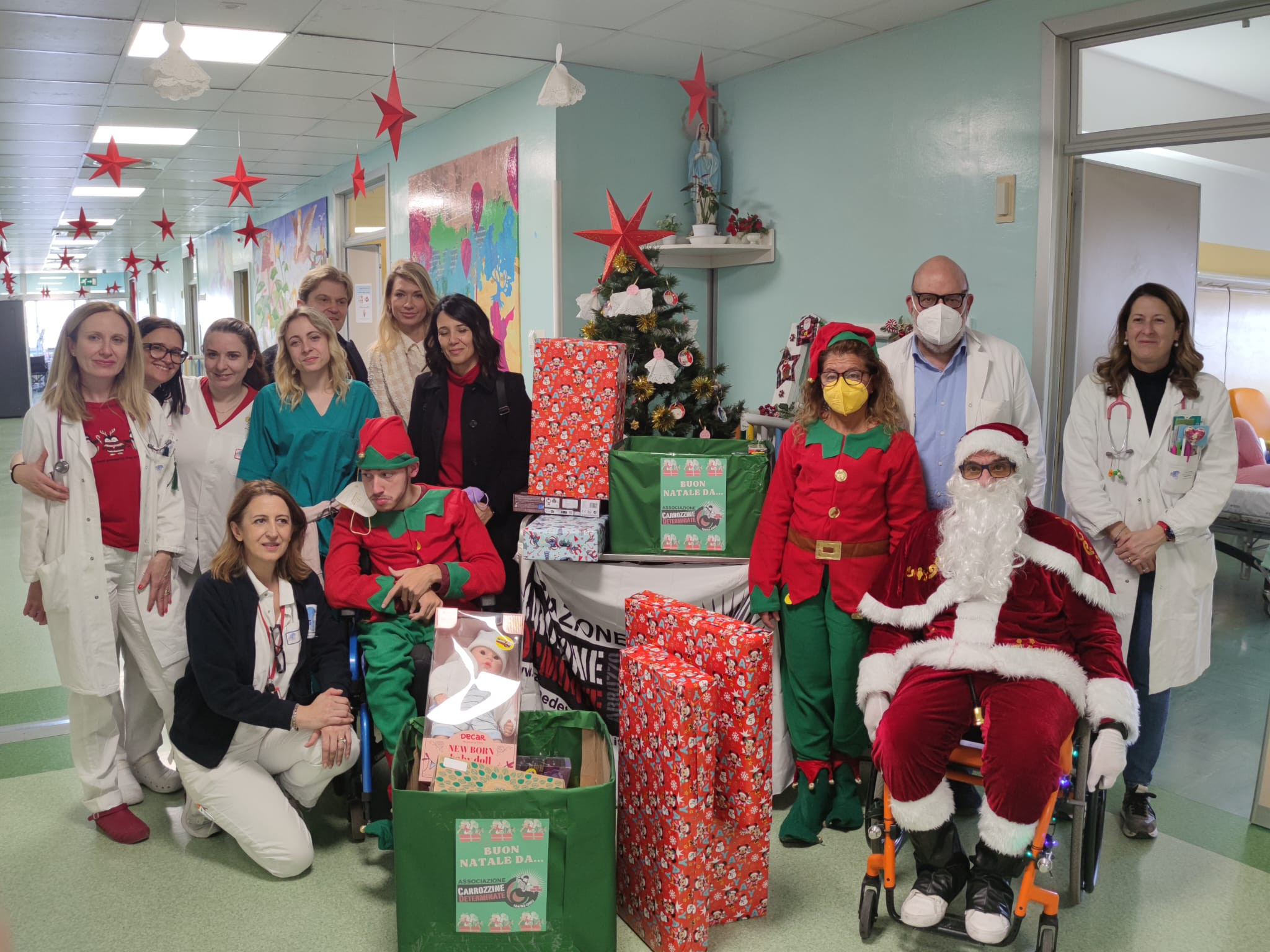 Nella giornata di oggi, 18 dicembre, si è svolto il primo accesso all’Ospedale di Pescara per la consegna della prima tranche di donazioni nei reparti di Oncoematologia Pediatrica, Day Hospital di oncoematologia, Pediatria e Neonatologia. A rendere l’incontro ancora più speciale è stata la presenza di un Babbo Natale in carrozzina, a bordo di una slitta speciale a due ruote e accompagnato dai suoi elfi, che ha portato sorrisi, stupore e momenti di serenità ai piccoli pazienti ricoverati.