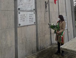 Giulianova. Alle 10 di questa mattina il Vice Sindaco Lidia Albani ha reso omaggio ai Caduti giuliesi della Seconda Guerra Mondiale deponendo fiori presso la lapide loro dedicata, nel cimitero cittadino. Il gesto ha aperto simbolicamente il “Giorno della Memoria”, giorno in cui, in Italia e nel mondo, si commemorano le vittime dell’ Olocausto.