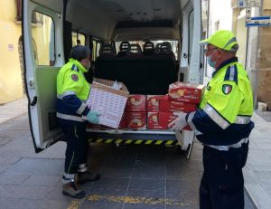 Giulianova. E’ iniziata oggi la distribuzione dei pacchi alimentari della “spesa sospesa” alle famiglie giuliesi in difficoltà. I pacchi sono stati donati dalle associazioni, aziende e privati che hanno aderito all’iniziativa solidale “La Spesa Sospesa” promossa dal Comune di Giulianova. Ad occuparsi di recapitare direttamente a casa le provviste, sono i volontari della protezione civile.