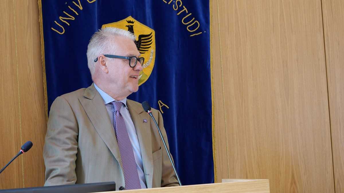 Numeri, ha evidenziato Alesse, che testimoniano come l’Università dell’Aquila sia riuscita a mantenere, “a dispetto del calo demografico che affligge l’Occidente industrializzato e nonostante i momenti di enorme difficoltà attraversati nell’ultimo decennio, attrattività, richiamando studenti e docenti da fuori città e da fuori regione e intercettando richieste che ci hanno spinto ad attivare nuovi corsi di studio. Oggi siamo a quota 71, tra triennali, magistrali e corsi a ciclo unico, cui si aggiungono corsi di dottorato, di specializzazione in area medica e sanitaria, master di I e II livello e corsi di perfezionamento, con una offerta didattica estremamente differenziata. Abbiamo migliorato sensibilmente anche le nostre performances” nel campo della internazionalizzazione, con 15 corsi erogati, in tutto o in parte, in lingua inglese che rilasciano titoli congiunti o doppi/multipli”.