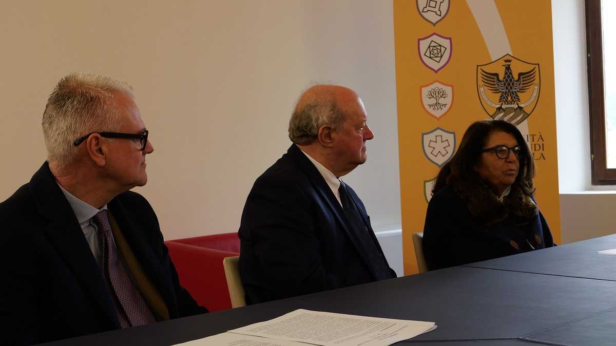 Numeri, ha evidenziato Alesse, che testimoniano come l’Università dell’Aquila sia riuscita a mantenere, “a dispetto del calo demografico che affligge l’Occidente industrializzato e nonostante i momenti di enorme difficoltà attraversati nell’ultimo decennio, attrattività, richiamando studenti e docenti da fuori città e da fuori regione e intercettando richieste che ci hanno spinto ad attivare nuovi corsi di studio. Oggi siamo a quota 71, tra triennali, magistrali e corsi a ciclo unico, cui si aggiungono corsi di dottorato, di specializzazione in area medica e sanitaria, master di I e II livello e corsi di perfezionamento, con una offerta didattica estremamente differenziata. Abbiamo migliorato sensibilmente anche le nostre performances” nel campo della internazionalizzazione, con 15 corsi erogati, in tutto o in parte, in lingua inglese che rilasciano titoli congiunti o doppi/multipli”.