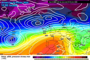 La lunga fase di tempo decisamente instabile, tra non molto, sembra che vorrà lasciare spazio ad una rimonta dell anticiclone di estrazione sub tropicale sul bacino occidentale del mediterraneo, coinvolgendo anche l’Italia. Pertanto ancora delle precipitazioni sull’Abruzzo nei prossimi due giorni, anche con un calo termico di qualche grado, ma poi a seguire la situazione appare in deciso miglioramento. Intanto Giovedì 19 Febbraio, una nuova perturbazione di origine atlantica, darà luogo a dei fenomeni moderati sulle aree interne, che via via si estenderanno verso levante nelle ore successive. Nevicate oltre i 2000 m al mattino, in calo nella seconda parte della giornata fino attorno ai 1400 m. Venti moderati o in qualche caso forti da ovest sud ovest, con possibile foehn lungo le zone centro orientali; temperature in aumento al mattino (+5/+6°c ad 850 hpa), in calo dal pomeriggio (+1/+2°c ad 850 hpa). Venerdì, correnti in rotazione da nord est e quindi più freddo (-1/-2°c ad 850 hpa in serata). Cielo generalmente nuvoloso, un pochino meno verso ovest. Precipitazioni moderate specie sui rilievi a stau orientale, con piogge e nevicate oltre i 1000 m circa. Tendenza ad un miglioramento verso sera. Giornata che appare stabile ed abbastanza soleggiata quella successiva di Sabato, ove solo qualche stratificazione sarà presente, oltre a qualche possibile addensamento sparso di poco conto su qualche settore interno. Ventilazione nord orientale, piuttosto vivace lungo le coste e l’immediato entroterra. Domenica, a come sembra, potrà essere una giornata buona, ove solo qualche stratificazione di passaggio sarà presente. Venti deboli da ovest sull’aquilano, da est altrove e temperature in sensibile aumento (+6/+8°c ad 850 hpa). Ed arriviamo a Lunedì 23, ove non sembrano esserci dei cambiamenti importanti rispetto al giorno prima. Cielo poco nuvoloso e temperature in lieve flessione. Venti sempre da ovest sull’entroterra e da est altrove. Martedì, solo passaggi stratificati e nulla più. Venti deboli come il giorno precedente e temperature senza importanti variazioni di rilievo (+4/+5°c ad 850 hpa). Infine Mercoledì 25 Febbraio, cielo poco nuvoloso su tutta la regione, venti deboli da ovest e da est sulle coste, temperature stazionarie.