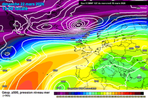 In questi giorni, in cui l’inverno astronomico si congederà lasciando il passo all equinozio di primavera che esordirà Venerdì 20 Marzo alle ore 15:44, la situazione appare ancora orientata su del tempo a tratti instabile ed a tratti con delle ampie schiarite e comunque con un clima tutto sommato che presenterà delle temperature al di sotto delle medie del periodo di qualche grado. Intanto Giovedì 19 Marzo, al mattino, ancora della nuvolosità sui settori centro orientali, con qualche fenomeno, nevoso oltre i 900/1000 m circa. Tendenza ad un miglioramento da metà giornata, ad iniziare dal teramano. Venti sempre orientali e temperature senza importanti variazioni di rilievo (0/+1°c ad 850 hpa). Venerdì, giorno come già detto poc anzi in cui esordirà la primavera astronomica, avremo il cielo tra poco nuvoloso e a tratti variabile. Possibilità di qualche debole fenomeno nel pomeriggio, nevoso oltre i 1300 m circa. Ventilazione sempre dai quadranti orientali e temperature in lieve aumento nei valori massimi. Sabato, tempo spiccatamente variabile alternata a qualche schiarita al mattino. Più nubi nel corso delle ore pomeridiane. Venti da nord est e temperature in rialzo di qualche grado (+2/+3°c ad 850 hpa). Domenica sarà possibile della nuvolosità in arrivo dalla tarda mattinata da oves, associato a dei possibili fenomeni dal pomeriggio. Qualche nevicata oltre i 1600 m. Venti sempre dai quadranti orientali e temperature stazionarie. Lunedì, al momento, appare una giornata con tempo instabile e la possibilità di precipitazioni già dal corso della mattinata, specie sui settori interni. Neve al di sopra dei 1600/1700 m circa. Ventilazione da nord est e temperature senza variazioni di rilievo. Martedì nulla di rilevante, ove il cielo si presenterà poco nuvoloso e come sembra nella successiva giornata di Mercoledì, ove tuttavia qualche velatura sarà possibile nelle ore pomeridiane. Temperature pressochè stazionarie.