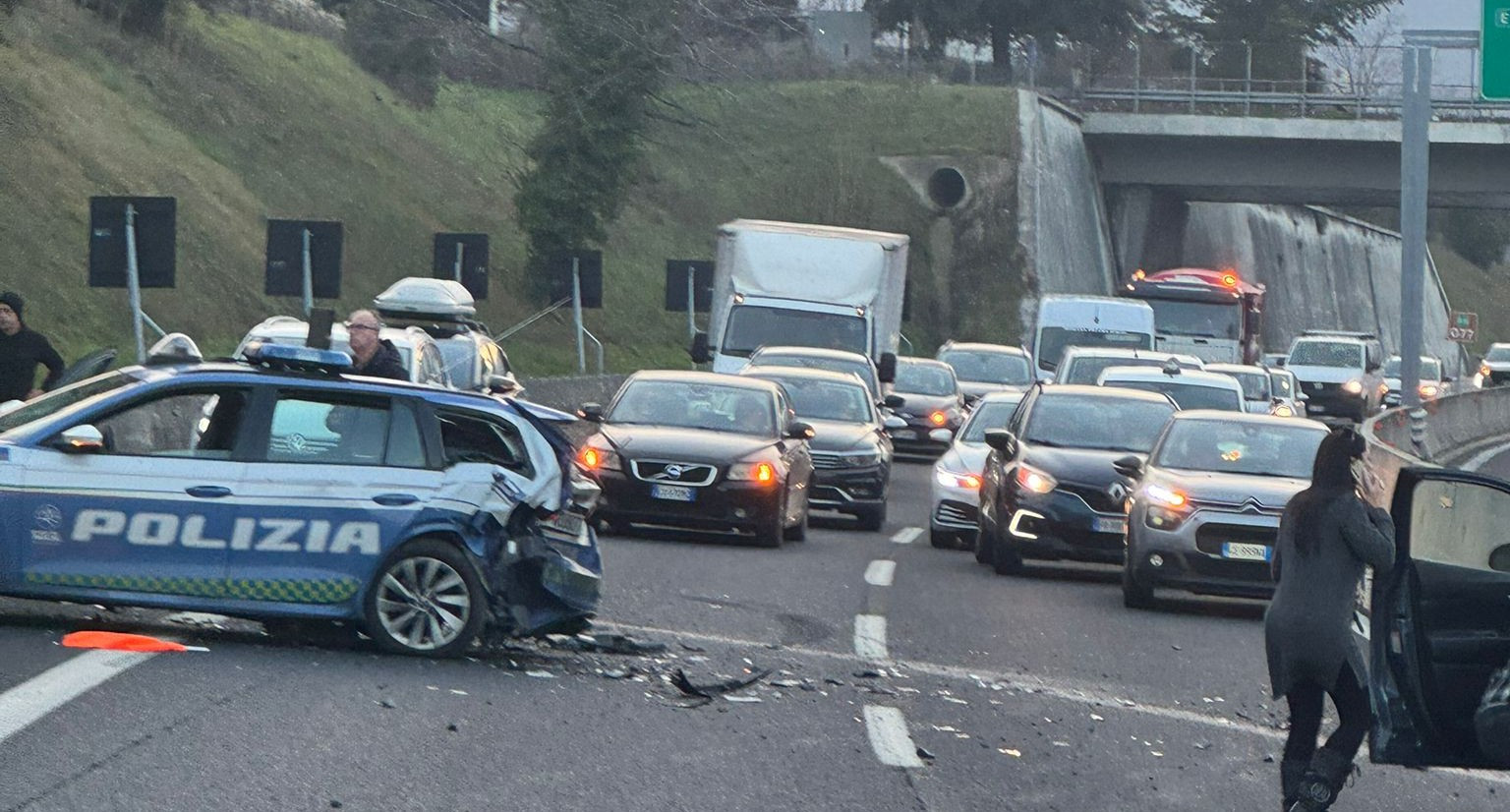 L’agente era intervenuto con un’auto di servizio per prestare assistenza a un mezzo pesante rimasto in avaria quando la vettura è stata violentemente tamponata da un’auto che procedeva lungo la corsia di emergenza.