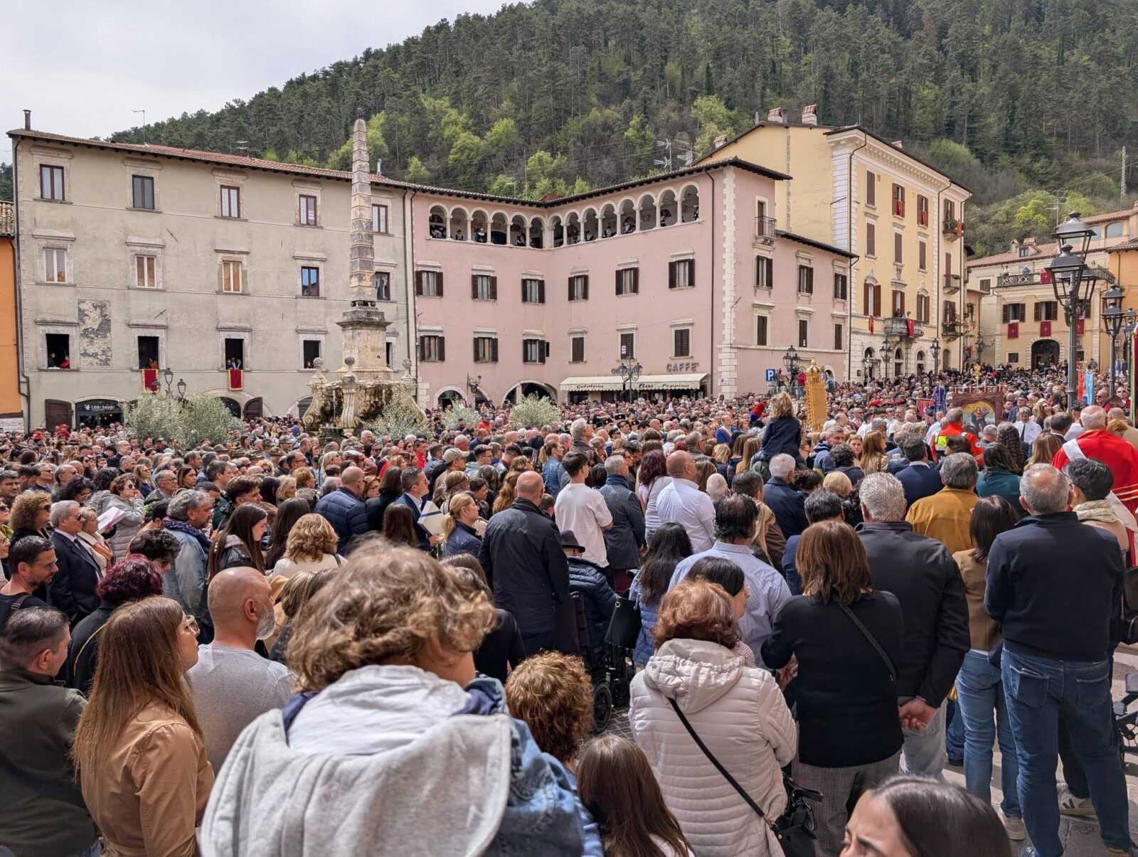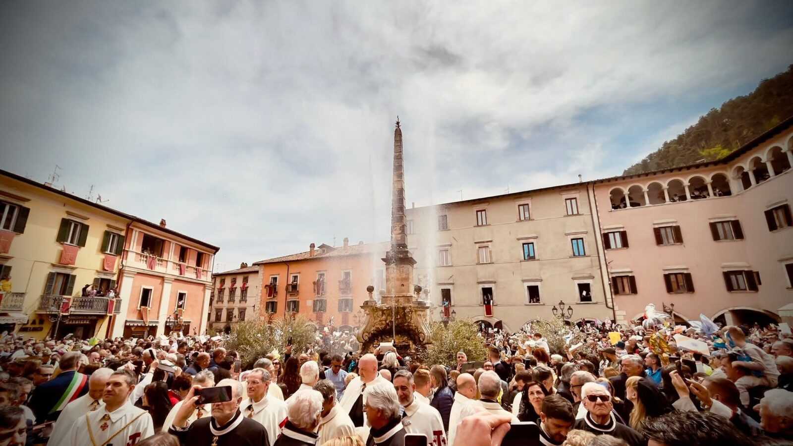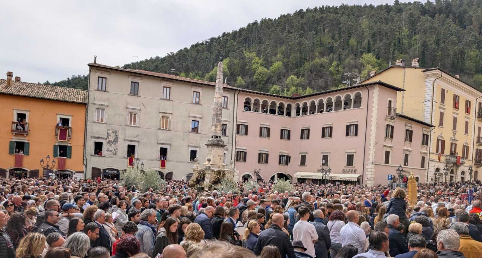 Tagliacozzo. Il Volto Santo e lo sguardo di Cristo: emozione e fede in una piazza gremita a Tagliacozzo.