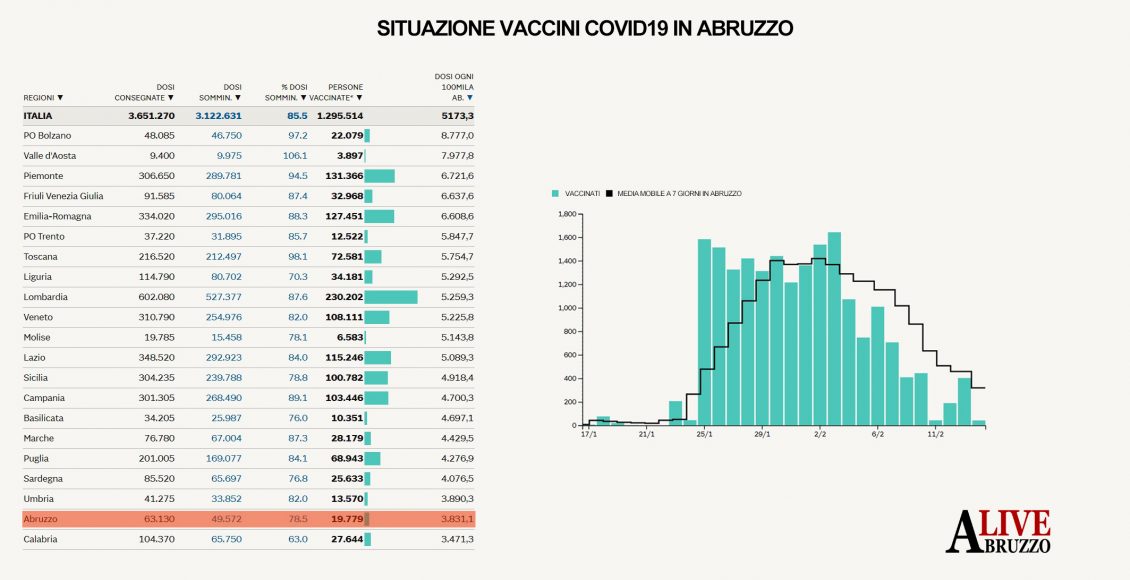 In Abruzzo meno dosi del resto d’Italia, così ci vorranno 11 anni per vaccinare il 70%