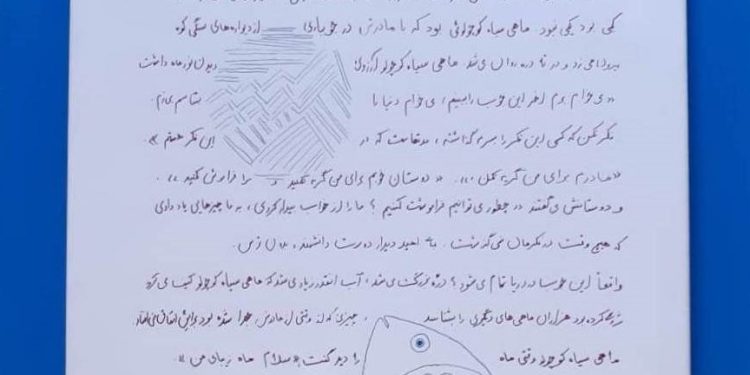 In particolare l’opera di Grandoni è ispirata alla favola “Il Pesciolino Nero” dello scrittore iraniano Samad Behrangi. Intellettuale di simpatie socialiste, Behrangi morì nel 1968, in circostanze misteriose, pochi mesi dopo l’uscita del libro: aveva soltanto 29 anni e sono in molti a ritenere che la sua scomparsa sia da ricondurre al contenuto dell’opera. “Il Pesciolino Nero” non è infatti soltanto una favola per bambini, ma è unanimemente considerato un potentissimo inno alla libertà e una straordinaria metafora politica, tanto che il libro fu sottoposto a censura dall’opprimente regime dell’epoca.