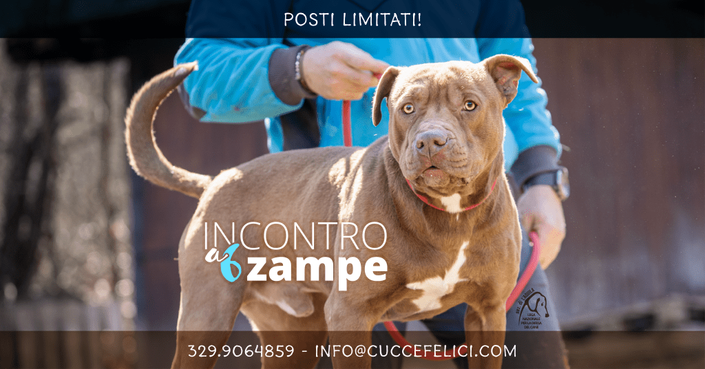 Si svolgerà il prossimo sabato 21 maggio, dalle 9.00 alle 13.00, nella cornice del Rifugio Cuccefelici della LNDC di L’Aquila, l’Incontro a 6 zampe, evento benefit a sostegno delle attività dell’Associazione: un’intera mattina all’insegna delle attività assieme ai nostri amici con la coda. Cristian Evangelista, Istruttore cinofilo SIUA, tecnico Mobility Dog FICSS e Dogtrainer LNDC, farà una valutazione dei cani iscritti e darà al binomio gli strumenti per lavorare e divertirsi insieme.
