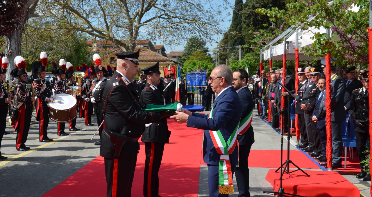 La cerimonia è stata scandita da momenti di particolare solennità e ha visto lo schieramento dalla Fanfara della Legione Carabinieri di Roma, diretti dal luogotenente carica speciale Danilo Di Silvestro, da un picchetto d’onore e da una rappresentanza di comandanti e militari delle Stazioni Carabinieri della provincia di Pescara. I sindaci di Manoppello Giorgio De Luca e di Serramonacesca Sebastiano Massimiano hanno consegnato al comandante di Stazione Marco Antonio De Vito, le bandiere nazionale ed europea, successivamente benedette dal cappellano militare del Comando Legione “Abruzzo e Molise”, Don Claudio Ricchiuti.